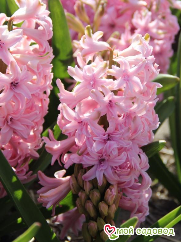 В высоту гиацинт достигает 25 – 30 см. Цветение начинается вначале апреля. Соцветия формируются длиной 15 – 20 см. Цветки махровые. В полном роспуске их диаметр равен 4 см. Лепестки окрашены в нежно-розовый цвет. Цветущее растение источает потрясающий сладковатый аромат, который быстро наполняет сад.
