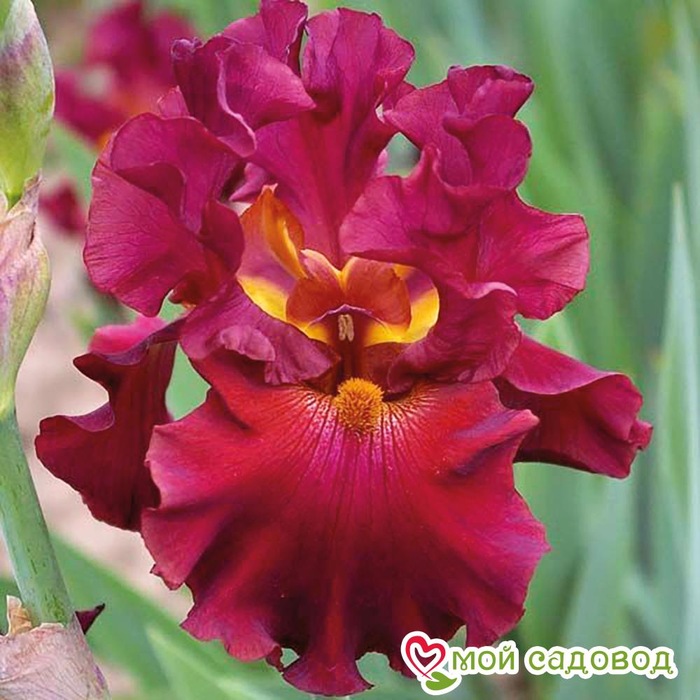 Ирис представляет собой растение с прямыми и прочными стеблями, достигающими в длину 70 см. У него широкие и глубоко зеленые листья. Внешне многолетник во многом напоминает орхидею. Окрас цветков – ярко-малиновый или красный. В полном роспуске диаметр цветка составляет 12 – 15 см. Аромат тонкий и едва заметный.